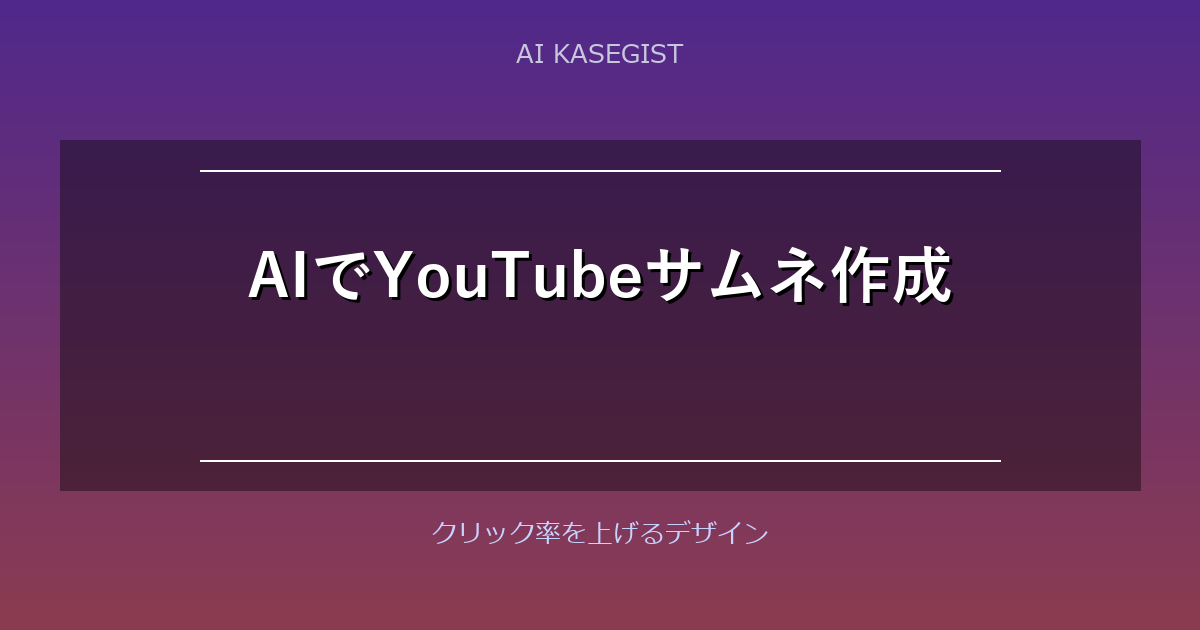 しかし、魅力的なサムネイルを毎回作るのは時間がかかります。デザインソフトの操作に慣れていない人なら、1枚に30分〜1時間かかることも。そこで注目されているのがAIを使ったサムネイル作成です。AIツールを活用すれば、デザイン未経験者でも5〜10分で高品質なサムネイルが完成します。